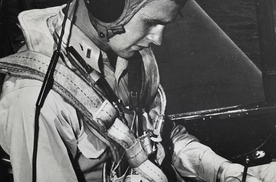George H. W. Bush v kokpitu stroje Grumman TBM-1C Avenger v roce 1944. (foto: Wikimedia Commons, U.S. Navy, PDM 1.0)