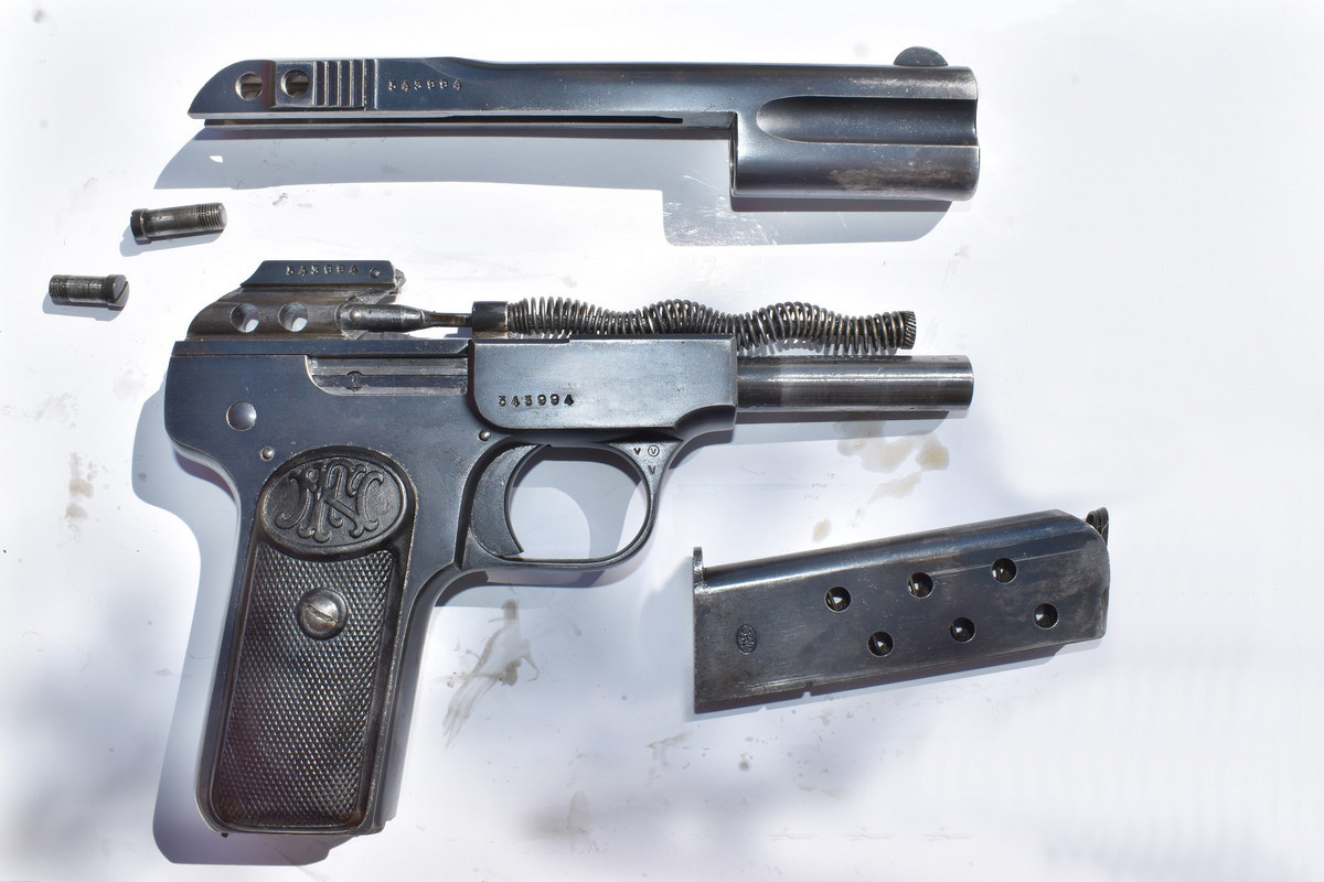 Vlastním tuto pistoli již řadu let a nikdy sem neměl problém s jakýmkoli druhem střeliva, takže není divu, že tento model slavil ve své době takový úspěch. Má však také jednu velkou nevýhodu, jíž se Browning u pozdějších modelů už vyvaroval – nedá se rozebrat bez pomoci šroubováku. Po vyšroubování dvou šroubů vysuneme závěr dopředu a v případě, že to nejde, je třeba jej dvakrát natáhnout a pustit, pak se posune sám. Popotáhneme bicí pružinu dopředu a i s vodítkem ji vyklopíme nahoru z držáku na rámu. Potom vysuneme zadní část závěru dozadu. Hlaveň je pevně spojena s rámem.