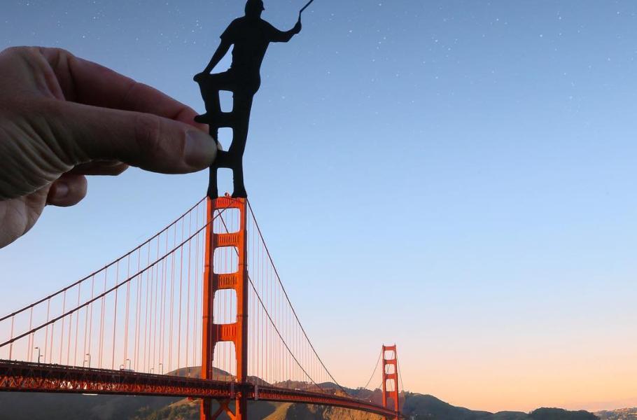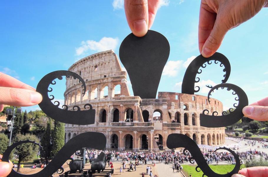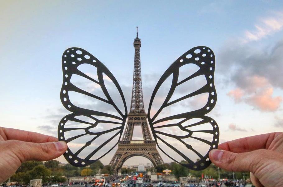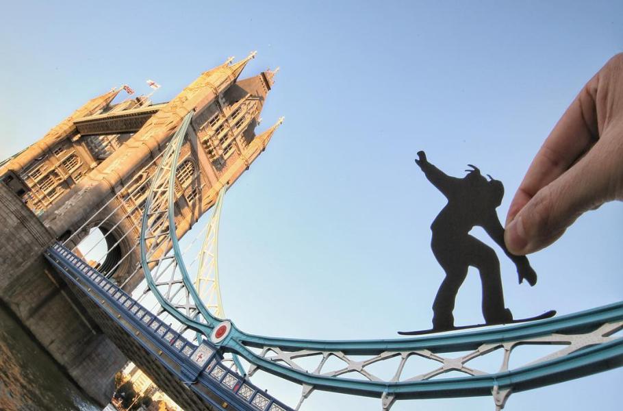 Britský fotograf Rich McCor se rozhodl, že vylepší své cestovatelské fotografie. Slavná místa a známé stavby fotí tak, že k nim přidává výstřižky z papíru. Vznikají tak veselé a originální mikropříběhy