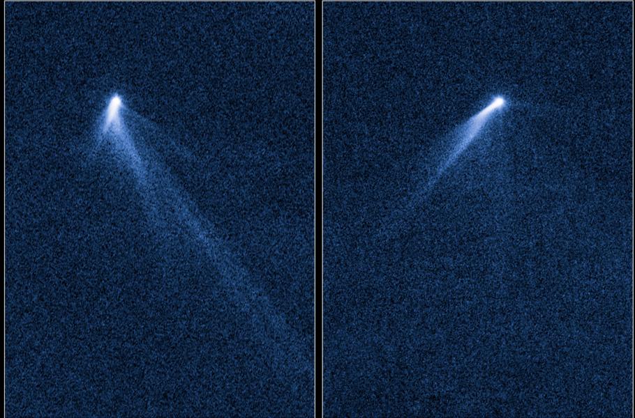 Těleso vyvrhovalo prach přinejmenším posledních pět měsíců. Astronomové nepředpokládají, že by pozorované chvosty mohly být důsledkem srážky s jiným objektem, protože se nepodařilo detekovat větší množství (shluk) prachu uvolněného do okolního prostoru najednou. Podle pečlivého počítačového modelování, které uskutečnila členka vědeckého týmu z Institutu Maxe Plancka v Německu Jessica Agarwalová, mohou ohony představovat následek řady jednorázových výronů.