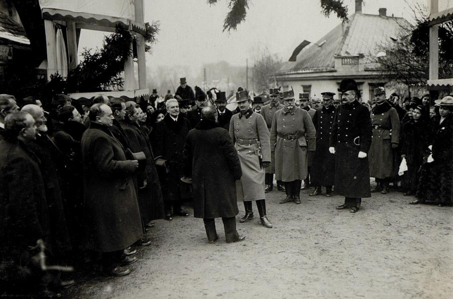 Karel na Brandýs nad Labem nezapomněl ani jako císař. Takto jej při návštěvě města roku 1917 vítali místní. (foto: Wikimedia Commons, Österreichische Nationalbibliothek, PDM 1.0)