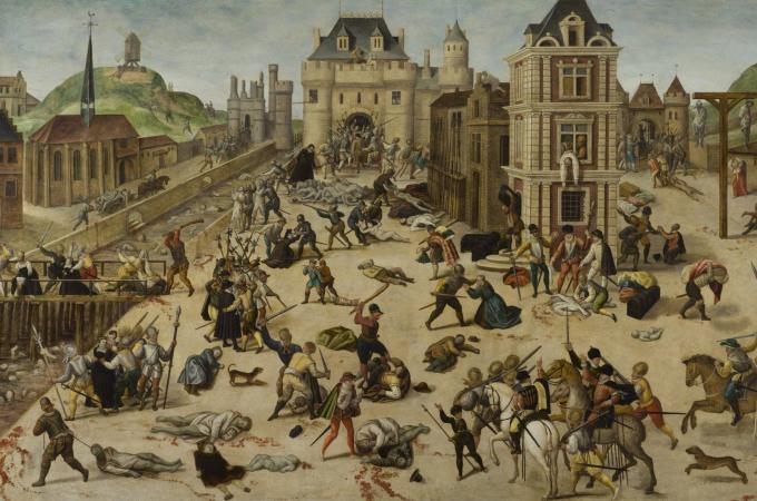 Zdroj:Francie se od šedesátých let 16. století zmítala v pekle náboženských válek mezi katolíky a hugenoty, protestanty kalvínské víry. Mladý král Karel IX. byl slabý vladař, jako regentka za něj vládla královna-matka Kateřina Medicejská. Aby synovi udržela vládu i trochu moci, musela lavírovat mezi představiteli obou konfesí. Nakonec se jí podařilo sjednat mír, jejž mělo 18. srpna 1572 zpečetit uzavření sňatku její katolické dcery Markéty s nejurozenějším z hugenotů, králem Jindřichem Navarrským.