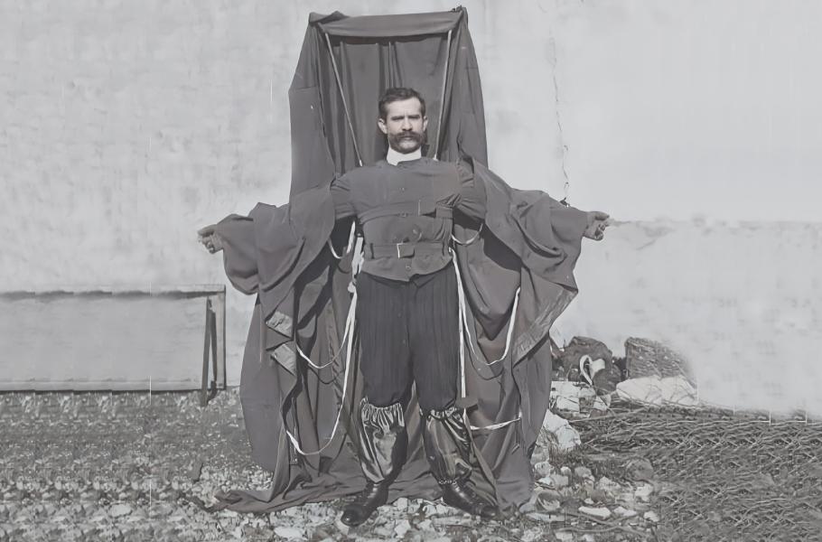 Výsledkem byl parašutistický oblek, který se příliš nelišil od ochranných oděvů, jež v té době nosili letci. Svůj vynález však vyztužil pruty a vylepšil hedvábnou klenbou a gumou. Doufal, že právě tyto prvky přinesou revoluční změnu.