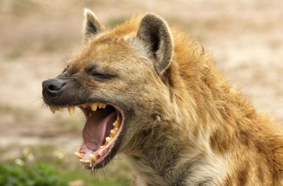 Mezi živočichy s velmi silným stiskem čelistí se nepochybně řadí hyena skvrnitá (Crocuta crocuta). Tato společenská šelma obývá africké oblasti jižně od Sahary a dosahuje hmotnosti dospělého člověka. Je rychlým a vytrvalým běžcem, což napomáhá její úspěšnosti při lovu. Mezi schopnosti hyen patří také drcení kostní hmoty díky velké odolnosti čelistí. Ta je umožněna i extrémně pevnou stavbou lebky. Podle různých studií dokáže na špičkách zadních zubů vyvinout sílu stisku od 900 do 4 500 newtonů, čímž překonává o 40 % levharty a dokonce i medvěda hnědého. Hyena tak dokáže rozkousnout dokonce i velké kosti žiraf o průměru kolem sedmi centimetrů. Také uspořádání a postavení zubů umožňuje zvládat extrémně silné mechanické tlaky při drcení kostí.