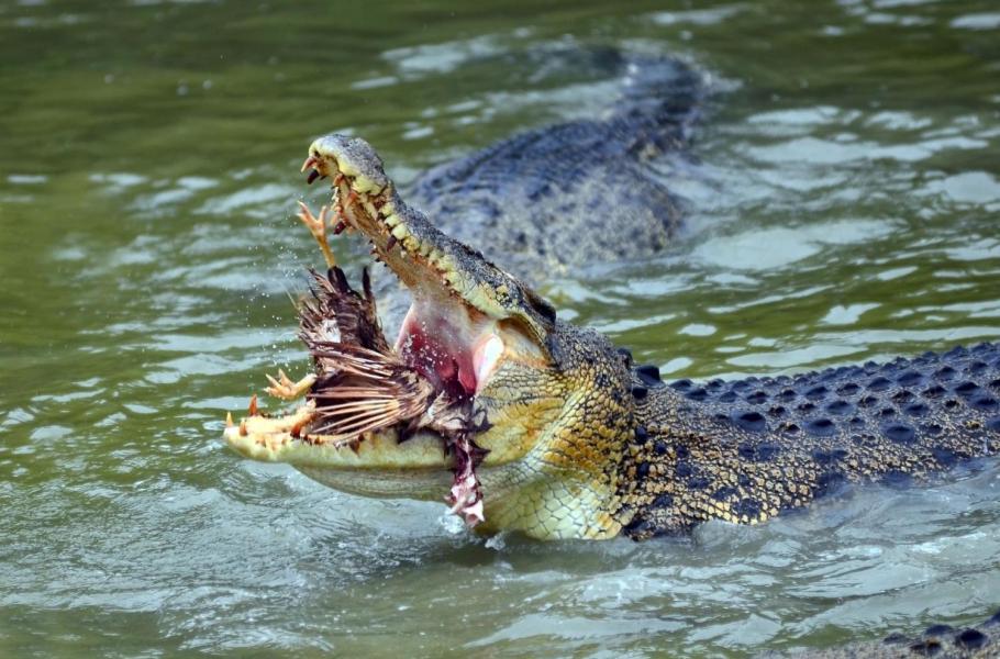 Krokodýli jsou silným zákusem pověstní, a to plným právem. V současnosti nemají ve světě zvířat na souši žádného konkurenta. Největší dnes žijící plaz je krokodýl mořský (Crocodylus porosus), který je zároveň i rekordmanem v tomto „oboru“. V roce 2012 prováděl experimenty s živými krokodýly paleobiolog Greg Erickson. Ten používá tyče a speciální zařízení pro měření tlaku, které strká živým zvířatům do zadní části tlamy. Výsledky těchto pokusů byly jednoznačné – u krokodýla mořského dosáhla nejvyšší naměřená hodnota téměř 16 500 newtonů, což několikanásobně překonává i hyenu skvrnitou. Přitom je pravděpodobné, že v přírodě jsou větší krokodýli schopní ještě silnějšího zákusu.