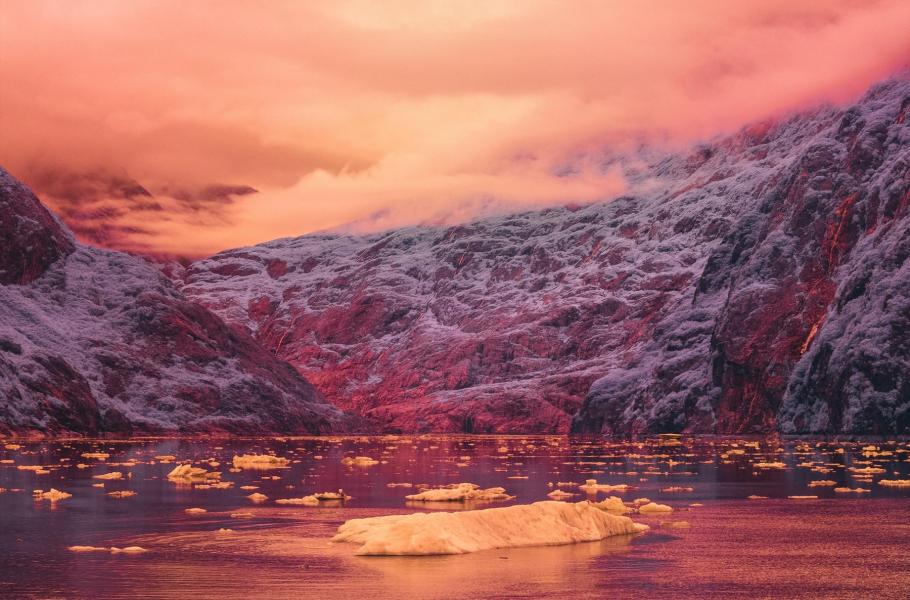 To, co běžně vypadá jako kamenitá pustina pokrytá tenkou vrstvou prašanu, se v infračerveném spektru mění v sálající výheň rudých, oranžových a růžových tónů. Bradley G. Munkowitz pořídil snímek v sérii, kterou zasvětil přírodě Aljašky.
