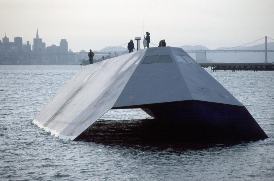 Experimentální plavidlo Sea Shadow, tedy „mořský stín“, se zrodilo ze spolupráce amerického námořnictva, vládní agentury Defense Advanced Research Projects Agency (DARPA) a společnosti Lockheed. Dvoutrupý stroj se vody zdánlivě dotýkal pouze dvěma tenkými plochami, pod hladinou měl ovšem plováky, v nichž se nacházely i motory. Unikátní tvar pomáhal lodi zdolávat vlny vysoké až 5,5 metru a skrýval ji před radary. Plavidlo se sice podařilo dokončit už v roce 1984, ale veřejnost ho poprvé spatřila teprve o devět let později. Sea Shadow navíc nikdy nevyplul do akce: Výroba skončila jedním prototypem, který byl v roce 2012 prodán a rozebrán na součástky.