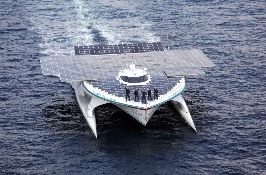 Tûranor PlanetSolar představuje aktuálně největší plavidlo poháněné sluneční energií: Jeho trup měří na délku 31 m a pokrývá ho 537 m² solárních panelů. Ty slouží k dobíjení lithiových baterií o celkové hmotnosti 8,5 tun, které následně napájejí dva elektromotory. V roce 2010 obkroužila jachta Zemi jako první dopravní prostředek poháněný sluncem, a to za úctyhodných 584 dnů. V současnosti loď využívá nadace Race for Water, jež se zaměřuje na ochranu oceánů.