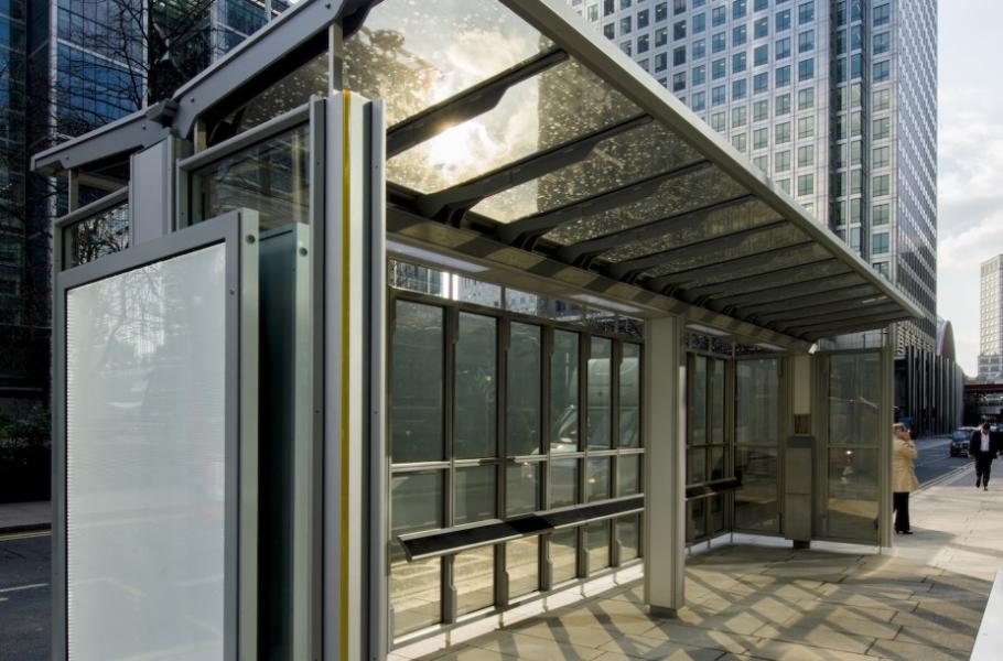 Technologické společnosti Polysolar a Canary Wharf Group slavnostně zahájili provoz první solární autobusové zastávky ve Velké Británii. Při stavbě kryté zastávky hromadné dopravy bylo použito technologicky převratné průhledné fotovoltaické sklo, které funguje i za špatného počasí. Zastávka díky tomu vyrobí tolik elektrické energie, že by to pokrylo spotřebu pro jednu průměrnou londýnskou domácnost.