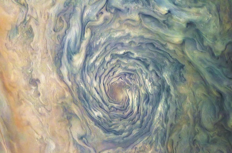 Na jižním pólu Jupiteru se nacházejí velmi pravidelně uspořádané gigantické cyklony. Donedávna tam pět takových cyklon, jejichž velikost se blíží pozemským kontinentům, vytvářelo tvar pětiúhelníku, se šestou cyklonou uprostřed. Na nových snímcích sondy Juno se ale objevila další cyklona, která doplnila šestý vrchol obrazce na jižním pólu Jupiteru, takže tam vznikl šestiúhelník.