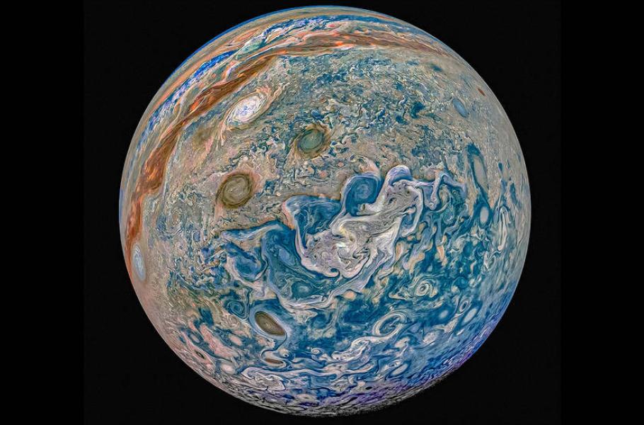 Sonda Juno pořídila unikátní snímky obrovských cyklon na Jupiterově pólu