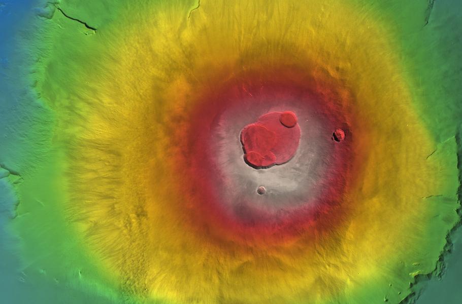 Planeta Mars je menší než Země, má přibližně poloviční rozměr. Důležitější je však její nižší průměrná hustota a mnohonásobně nižší celková hmotnost – a tím i nižší přitažlivost. Jde o jeden z důvodů, proč mohly na rudé planetě „vyrůst“ mnohem vyšší sopky. Nejvyšší z nich dostala jméno Olympus Mons a její vrchol se nachází téměř 26 km nad nulovou výškou (nad marsovskou „mořskou“ hladinou).
