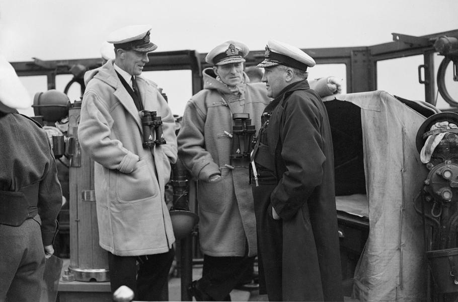 Mezi nejsilnější stránky Royal Navy tradičně náležel kvalitní důstojnický sbor. Na snímku kontraadmirálové Ernest Troubridge (vlevo), John Mansfield a kapitán lodi James Gornall. (foto: Wikimedia Commons, Imperial War Museums, CC0)