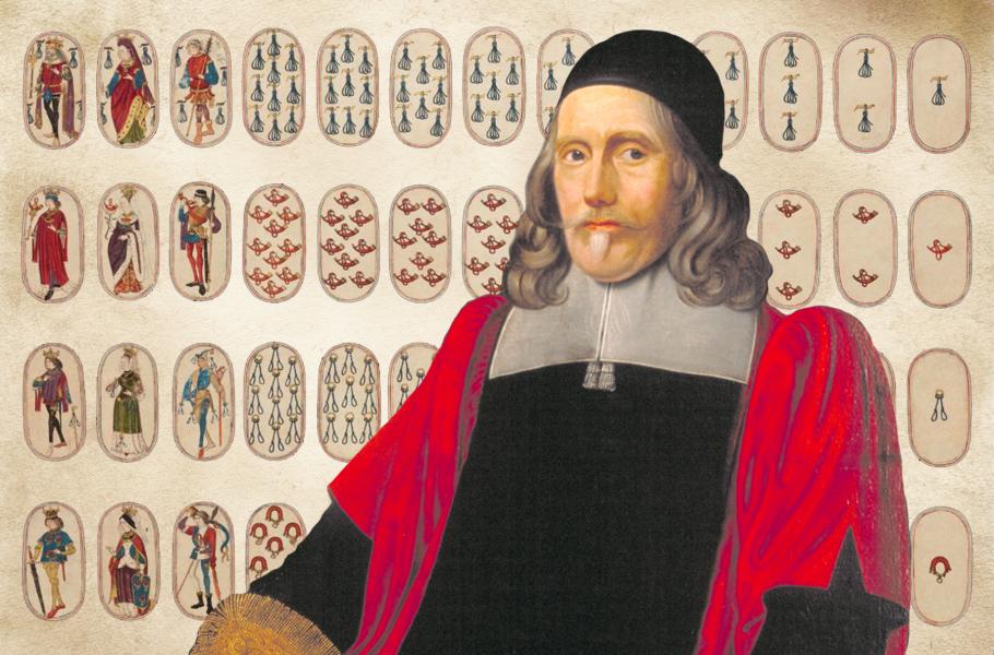 Edward Coke se stal nejvyšším státním zástupcem a měl hájit zájmy koruny. Současně však proti monopolům skrytě bojoval. V pozadí nejstarší dochovaný holandský karetní set z roku 1475. (ilustrace: Wikimedia Commons, Gilbert Jackson, PDM 1.0)