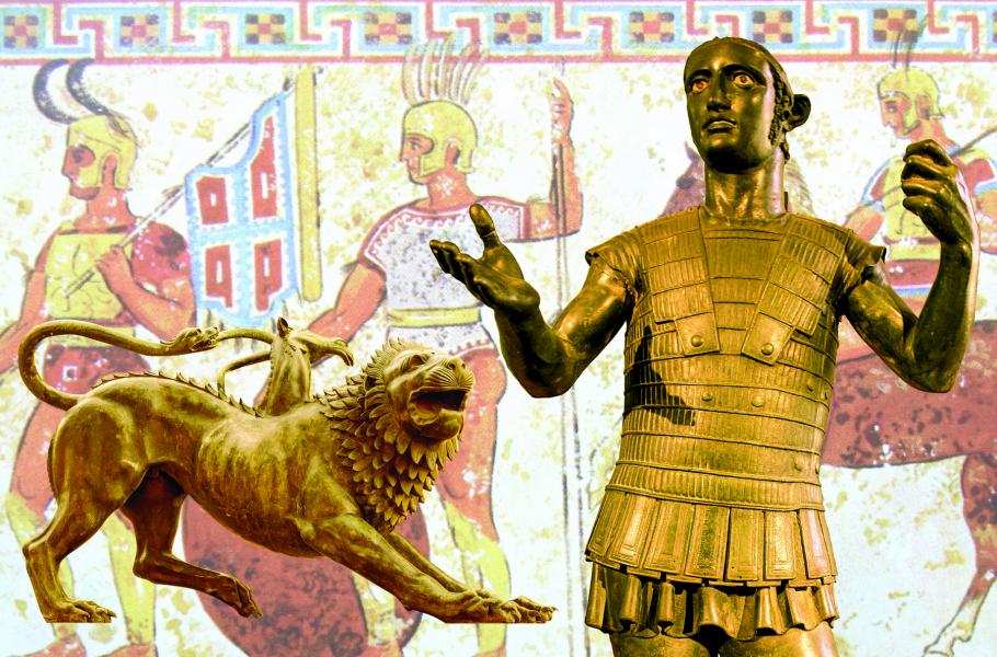 Etruskové si svých válečníků považovali a zobrazovali je na freskách, keramice i v podobě skulptur. Tato bronzová socha z 5. století př. n. l. patří k nejlépe dochovaným.