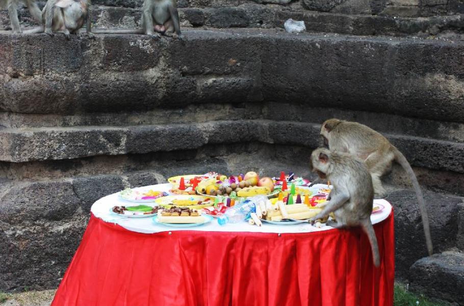 Hostina začíná slavnostním průvodem, ve kterém nechybí maškarní převleky, samozřejmě především ty opičí. Dav místních obyvatel a turistů se poté shromáždí v centru města v areálu chátrajícího khmérského chrámu Prang Sam Yot, kde žije největší část opičí populace. Když je pak makakům uvolněn přístup k desetimetrové tabuli, začne nevídaný spektákl: opice hltavě požírají nejen ovoce a zeleninu, ale i další vybrané lahůdky, rok od roku obměňované: smaženou rýži, čínské nudle, rajčatovou polévku, vajíčka nebo párky. Jako dezert si dají zmrzlinu a coca-colu v plechovce, kterou bez problému otevřou. Ale nejraději prý mají durian – asijské ovoce, které po dozrání silně zapáchá a navíc je velmi drahé...