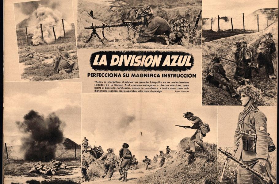 Propagandistická fotoreportáž o působení Modré divize na východní frontě, která vyšla ve španělských novinách v roce 1943.