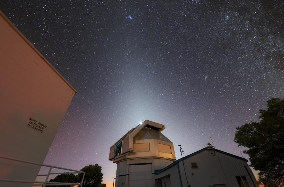 Zodiakální světlo nad 3,5metrovým dalekohledem WIYN. (foto: Kitt Peak National Observatory/NOIRLab/NSF/AURA/R. Sparks, CC BY-SA 4.0)