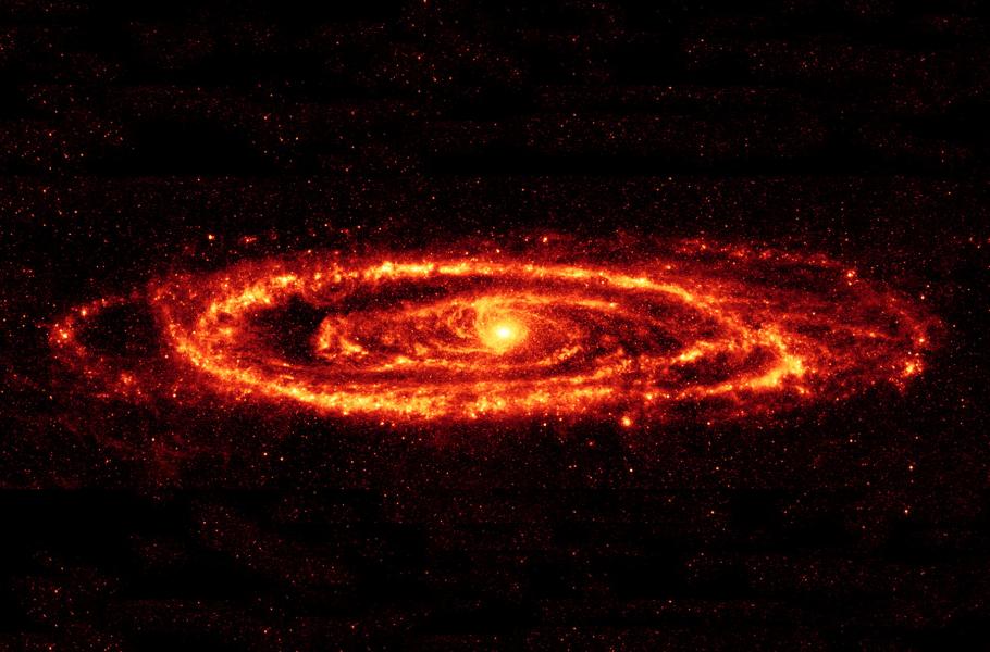 Galaxie v Andromedě pohledem infračerveného Spitzerova vesmírného dalekohledu. (foto: NASA/JPL-Caltech/University of Arizona, CC BY 4.0)