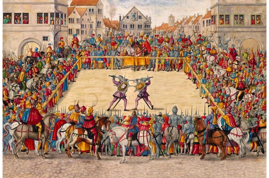 Boží soud, iluminace z 15. století. (ilustrace: Wikimedia Commons, Jörg Breu d. Jüngere, Paulus Hector Mair, PDM 1.0)