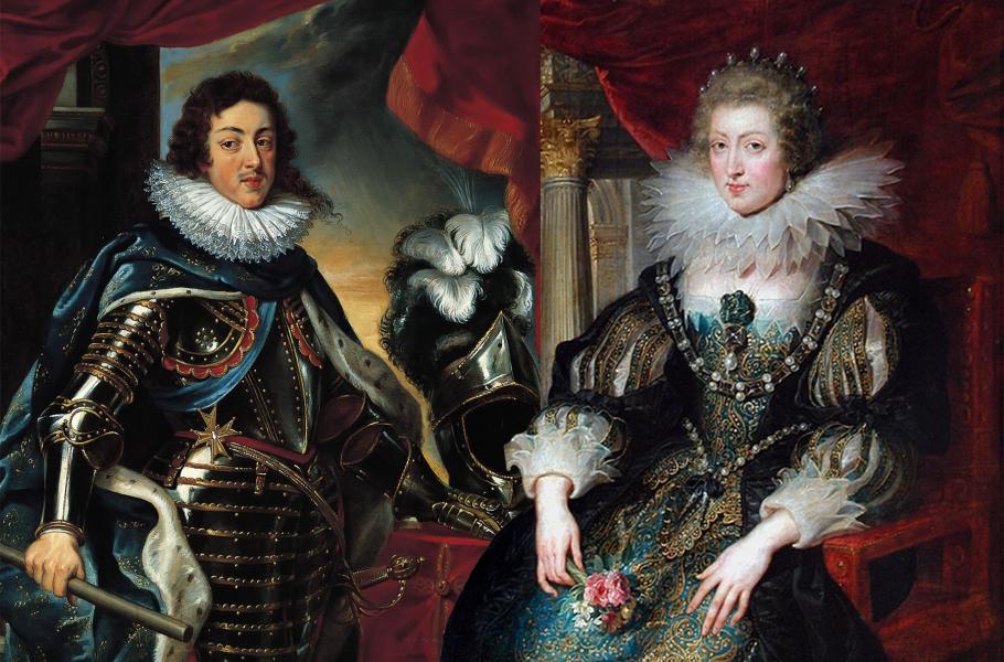 Ludvík XIII. a Anna Rakouská. Kdo byl skutečným otcem jejich potomka Ludvíka XIV.? (zdroj: Wikimedia Commons + Wikimedia Commons, CC0)