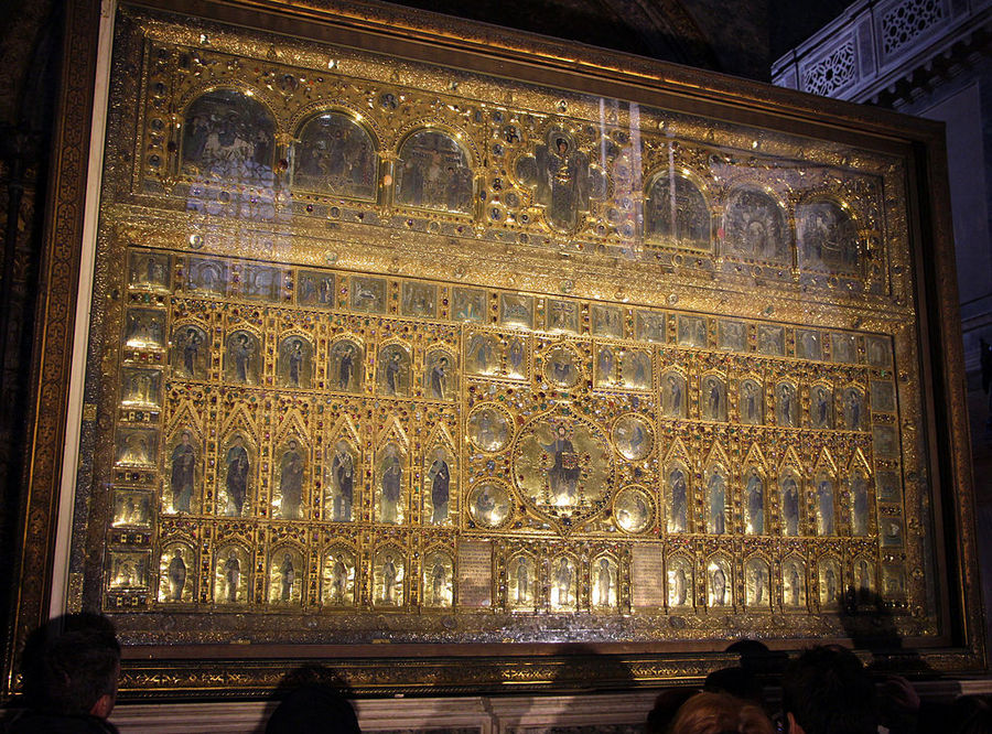 Pala d’oro čili zlaté antependium umístěné před hlavním oltářem (foto: Wikimedia Commons, Sailko, CC BY 3.0)