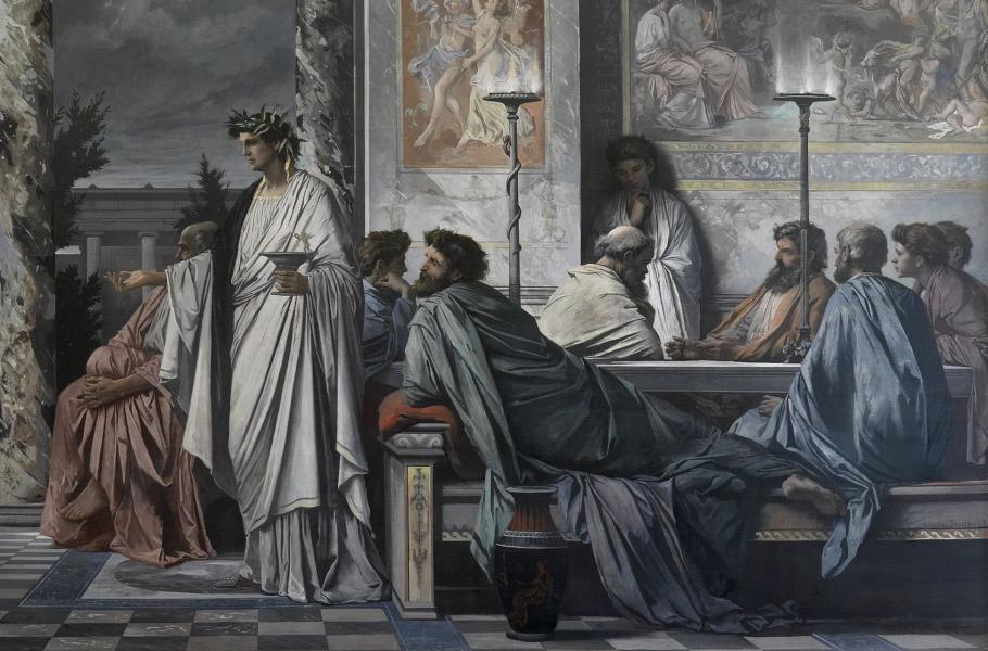 Dnešní odborné „sympozium“ má s původním starořeckým symposionem společný jen název – tehdy šlo o bujaré večírky mužů, kde se víno, filozofie i erotika mísily v opojném rituálu.