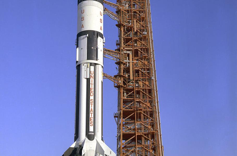 Apollo 5 na startovací rampě: Na raketě Saturn IB odstartovala do vesmíru bezpilotní loď Apollo 5 a úspěšně vyzkoušela motory nové sekce pro přistání na Měsíci.