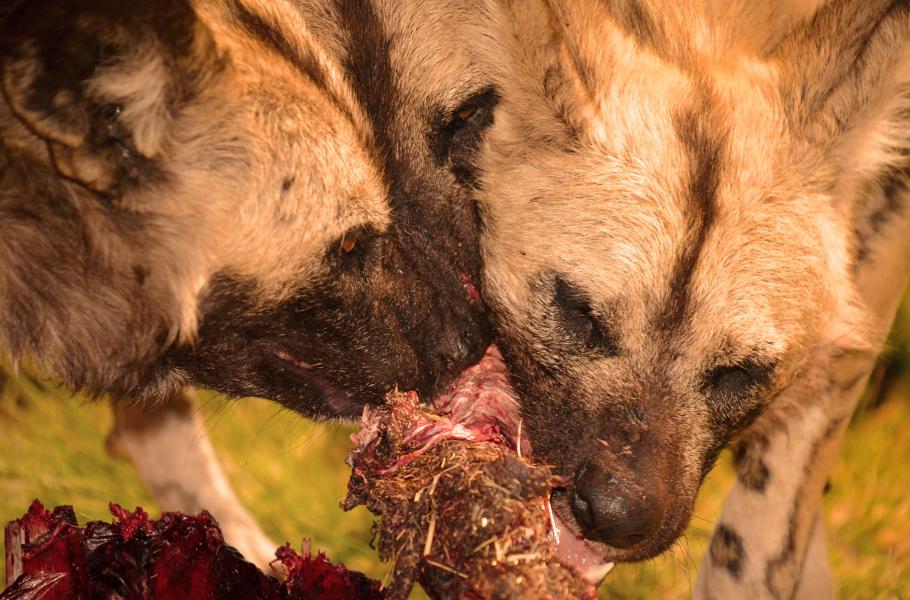 Asi nejvýraznější vlastností smečky divokých psů je soudržnost. Rok zpátky jsme na procházce s místním rančerem našli dva psy, přičemž jednomu z nich chyběla noha. Asi šlo o následek dřívějších půtek, nebo si svou daň vybralo oko pytláka. Mezi dvojicí, což mě tenkrát velmi překvapilo, leželo torzo velkého přímorožce (Oryx gazella), stále ještě s kusy zahnívajícího masa. Věděl jsem, že jsou psi velmi dobří lovci. Pro smečku asi není kořisti, kterou by nedokázala složit k zemi. Dokonce jsem viděl záběry, na nichž smečka doslova udolala, utrápila a pak roztrhala na kusy snad nejobávanějšího protivníka – levharta. Že by ale dva samotáři, z nichž jeden je chromý, sami skolili tak velké zvíře, jakým „oryx“ bezpochyby je?