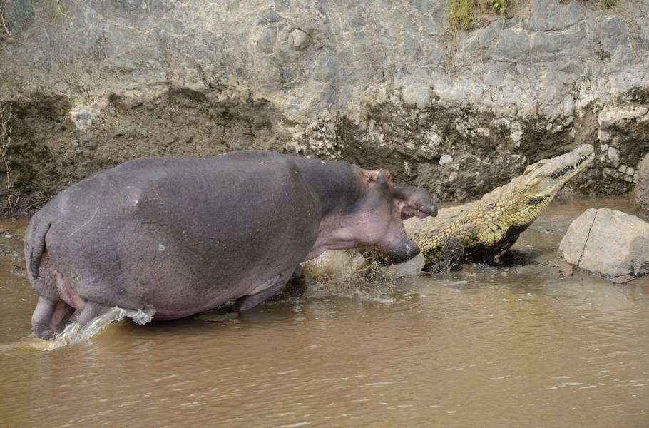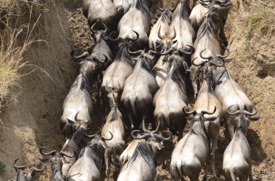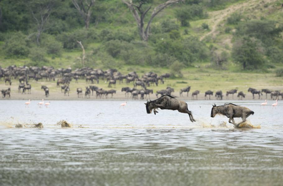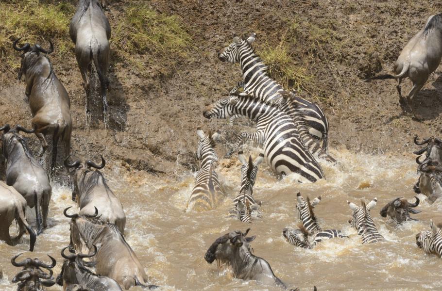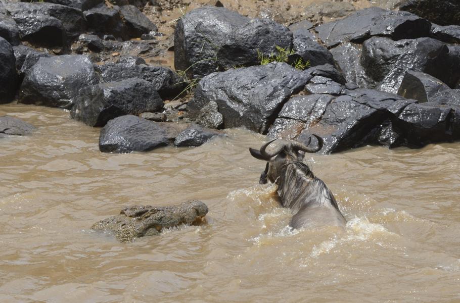 Při přesunech za zelenou trávou musí statisíce pakoňů překročit řeku Grumeti v národním parku Serengeti a známější Maru v rezervaci Masai Mara. V řekách na ně čeká nebezpečí v podobě mimořádně velkých krokodýlů. Mnoho zvířat při přechodu utone, ale většina pokračuje neochvějně dál…
