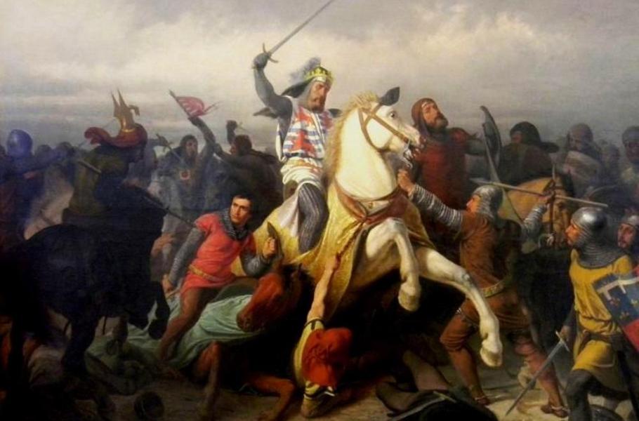 Francouzský král pak uspěchal i další útok a mnoho mužů tak zbytečně poslal na smrt. Začala řež, kterou Evropa nepamatovala. Na straně země galského kohouta bojoval i český vládce Jan Lucemburský, který byl tou dobou již téměř slepý. Traduje se, že se nechal svými rytíři odvézt doprostřed bitevního pole a máchal kolem sebe mečem, jak jen to šlo. Smrti však neunikl. Bitva skončila nutnou a zcela drtivou porážkou Francie. Král Filip VI. raději utekl do Paříže a dalším střetům se dlouho vyhýbal. Jeho armáda byla v troskách a pro Francii začalo dlouhé a temné období neustálých anglických výpadů. (foto: Wikimedia Commons, Viktor Barvitius, CC0)