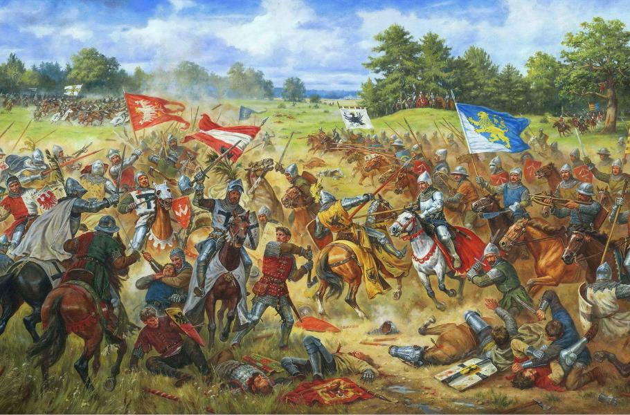 Válečného konfliktu se tehdy zúčastnili rytíři z celé Evropy. Boje začaly brzo ráno dne 15. července roku 1410. Vojáků byly zástupy z mnoha států. Nejprve měli navrch Řádoví rytíři, postupně však začala přebírat iniciativu polsko-litevská unie. Po mnoha hodinách se ale štěstěna konečně rozhodla, velitel řádového vojska Ulrich von Jungingen byl zabit a jeho armáda se dala na útěk. Bylo jim to ale málo platné, v nepřátelských vojácích se totiž doslova vařila krev. Vtrhli proto do tábora a zanechali po sobě jen spoustu bezvládných těl. Traduje se, že během této řeže zahynulo více vojáků než na samotném bitevním poli. Výhra pomohla Polsku etablovat se jako samostatný stát, naopak pro Řád německých rytířů se jednalo o skutečné fiasko. (foto: Wikimedia Commons, CC BY-SA 3.0)
