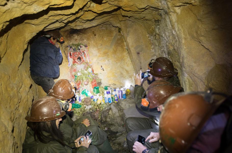 Průvodce pak návštěvníkům ukáže El Tía a obětuje za ně. Hlavu i penis podivně vyhlížejícího bůžka zasypaného kokou několikrát polije pálenkou a pořádný doušek zpravidla skončí také v jeho vlastním hrdle. Alkohol přitom horníkům slouží i coby pojistka – lijí ho na zem a zapalují, aby zjistili, zda se při povrchu nehromadí oxid uhelnatý.