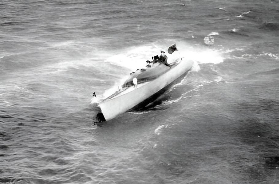 Olympijské závody motorových člunů v roce 1908 zhatila řada komplikací. V první řadě pořadatelé vůbec nemysleli na diváky: Závod o délce 40 námořních mil se odehrával na moři jižně od Southamptonu, a drtivá většina zájemců tedy na lodě uhánějící rychlostí zhruba 30 kilometrů v hodině neviděla. Nepřálo přitom ani počasí, silný vítr zvedal vysoké vlny a řada plavidel závod nedokončila. Jiné posádky odstoupily, protože prohrávaly boj s mořskou nemocí. (foto: Wikimedia Commons, Official Olympic Report, PDM 1.0)