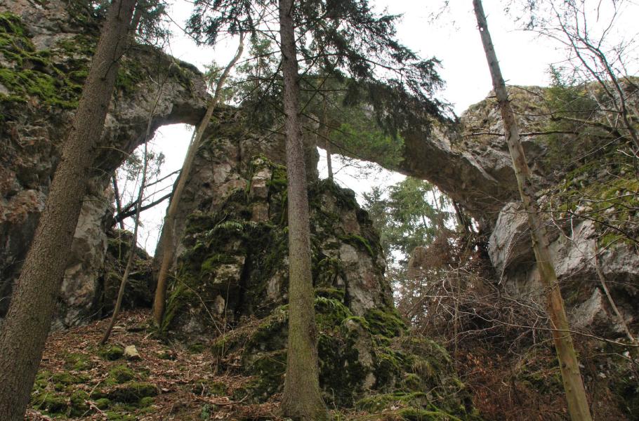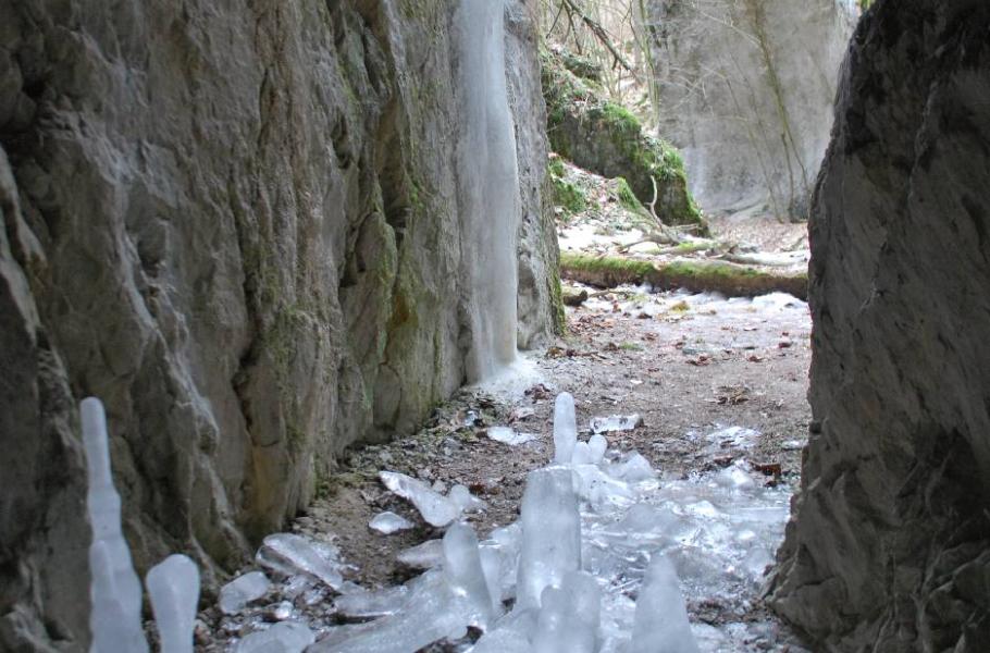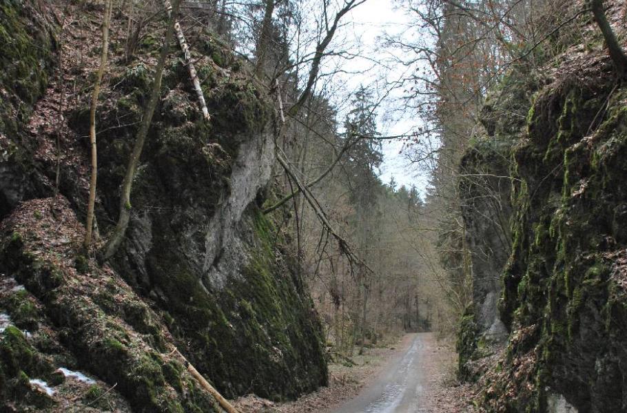 Sevřené skalní stěny vápencového kaňonu dýchnou na poutníka věčným chladem. Člověku bleskne hlavou, jak by šlo toto místo využít ve fantasy filmech a jak je dobře, že hledačům filmových lokací uniká. Ve skalách pokrytých břečťanem, mechy a lišejníky se objevují doupata, v nichž určitě hnízdí démoni a prostorné sluje, kde musely žít obávané saně…