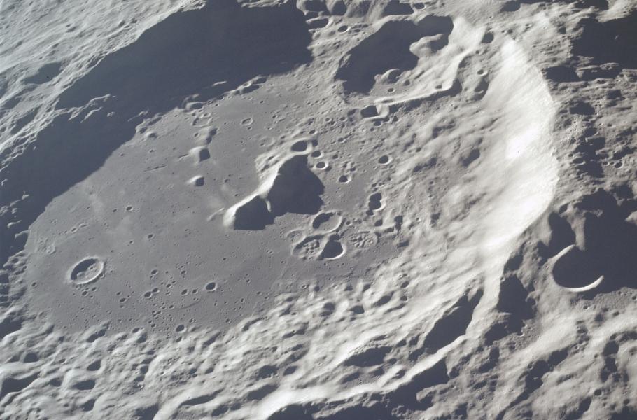S jistotou však víme, že na pomyslné druhé příčce stojí měsíční oblast Jižní pól – Aitken, s diametrem zhruba 2 500 km. Podle některých simulací pánev vytvořila srážka s tělesem o rozměrech kolem 200 km, které na povrch našeho souputníka dopadlo při poměrně nízké rychlosti a malém úhlu. Kráter odpovídá asi 70 % průměru celého našeho přirozeného satelitu. (foto: NASA, CC0)