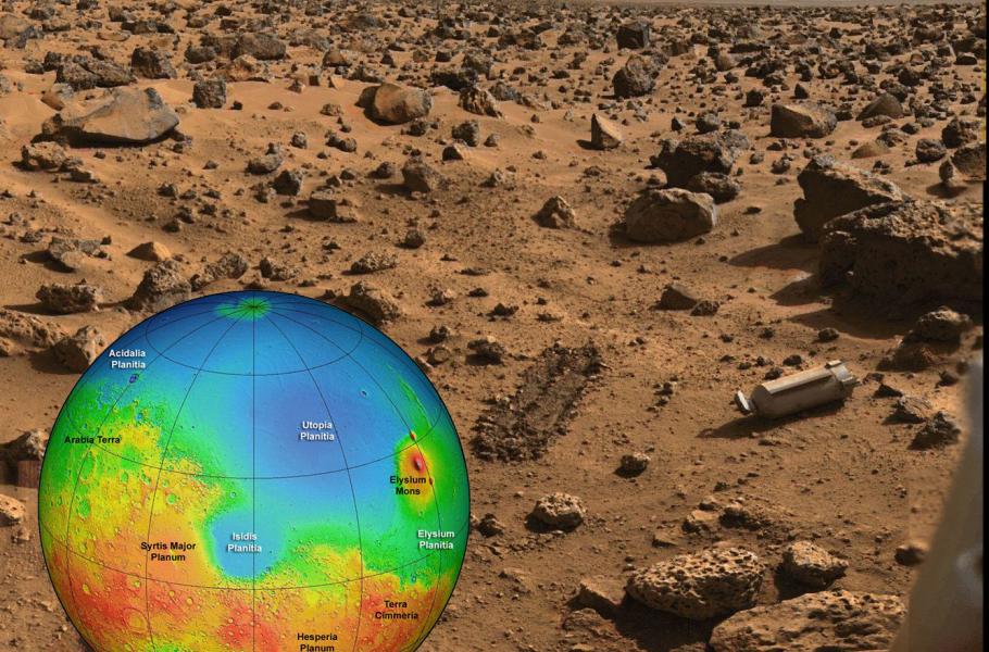 Největším potvrzeným impaktním kráterem našeho systému tak zůstává jiný útvar na rudé planetě, označovaný jako Utopia Planitia. S průměrem 3 300 km je zhruba 11krát větší než jeho nejrozsáhlejší dochovaný protějšek na Zemi. V roce 1976 na planině přistála legendární americká sonda Viking 2. V oblasti se podařilo detekovat řadu zajímavých kamenných útvarů, vrstvu jakéhosi permafrostu a významný objem podpovrchového vodního ledu. (foto: NASA, CC0)