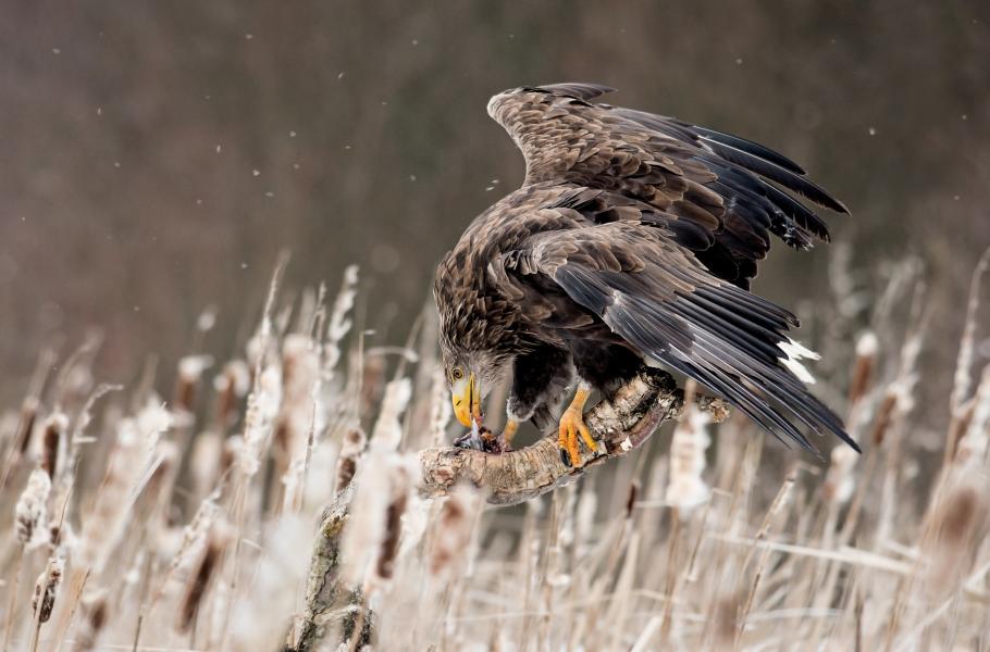 Orel mořský patří mezi největší orly vůbec: Rozpětí jeho křídel dosahuje až 240 cm a samice, která je těžší než samec, může vážit i 7 kg. Tito opeřenci se živí převážně rybami a menšími ptáky.