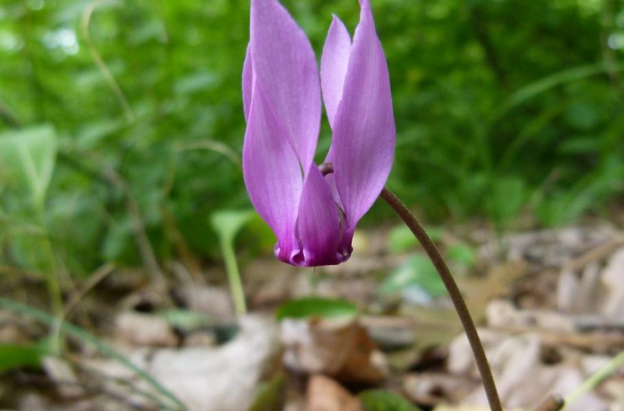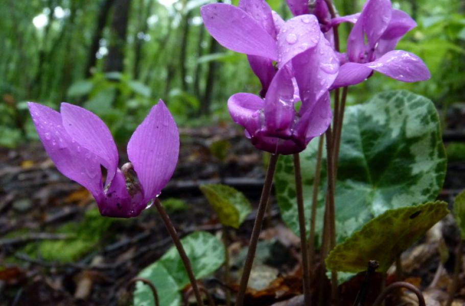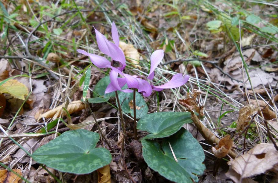Na karmínový půvab rozkvetlých bramboříků nachových (Cyclamen purpurascens) se každoročně velice těšíme – po horkém létě přináší unaveným očím svěží orientální krásu, kontrastující s vyprahlým okolím. I když se však pohybujeme v místech výskytu těchto malých skvostů, musíme mít oči stále na stopkách. Atraktivní kvítky se totiž dokážou nenápadně skrývat v tmavých, maskovaných místech a v okolním podrostu mohou uniknout zraku nepozorného „stopaře“.