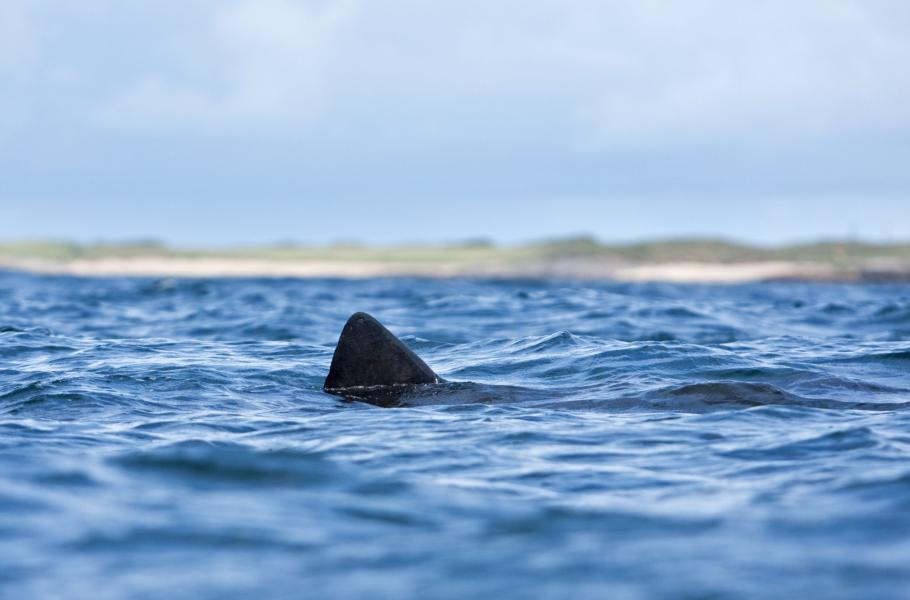 Přes svou velikost není žralok velký snadným objektem k nalezení. Projíždíme s lodí oblast Skotských Hebrid a ze soustředěného pohledu na vodní hladinu mě už pomalu začínají bolet oči. Rentgenuju každý metr vodní plochy a hledám obrovský stín nebo jinou známku přítomnosti „slunícího se žraloka“. Po hodině nakonec máme štěstí. Hladinu prořízne obrovská ploutev, mnohem větší než ty doposud spatřené, a po chvilce se na hladině ukáže i žraločí čumák. To znamená, že má otevřenou tlamu a právě se krmí. Náš kapitán Shane najíždí před něj. ,,Kdo je připravený?!” zazní jeho otázka? Hlásím se, že já můžu. Tak tedy: „Let's go!“ Skáču do studené vody a snažím se rychle dokopat ploutvemi přímo před žraloka. Pod vodou už vidím obrovský stín, jak se ke mně blíží.