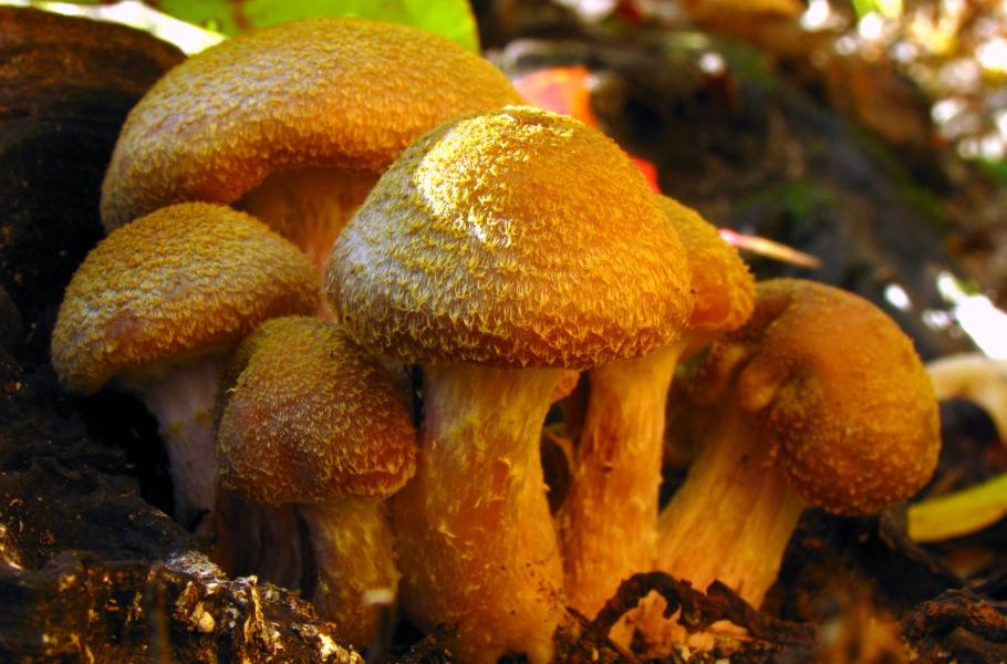 Viditelná číst václavky hlíznaté (Armillaria bulbosa, synonymum A. Gallica), která může vážit i několik tun. (foto: Wikimedia Commons, Dan Molter, CC BY-SA 3.0)