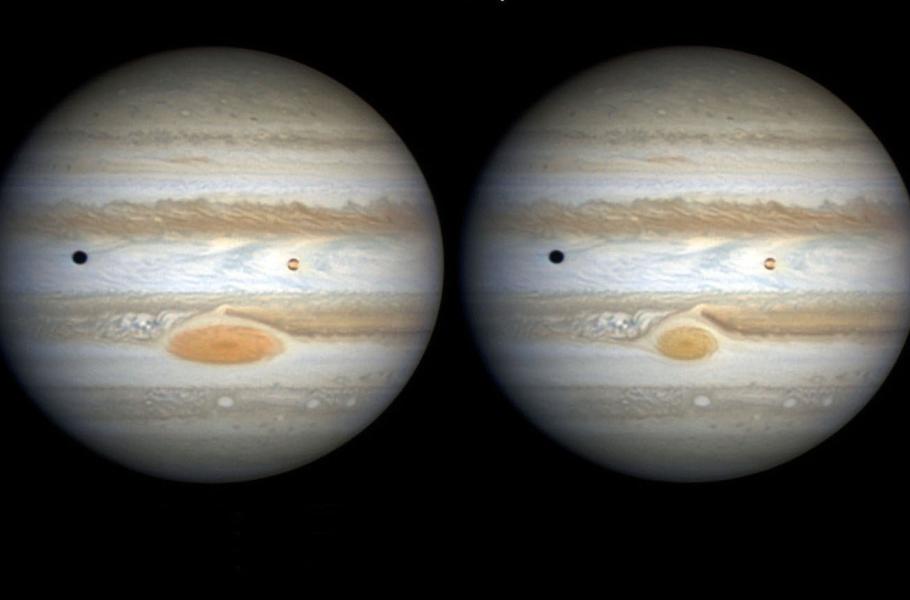 Největší planetu Sluneční soustavy si nedovedeme představit jinak než jako „pruhovaného obra“ se spoustou světlých zón a tmavých pásů, doplněných skvrnami různých velikostí. Uvedené stabilní struktury pozorují astronomové v atmosféře Jupitera již několik staletí: Konkrétně po obou stranách rovníku jsou i v malých dalekohledech zřetelně viditelné dva pásy nahnědlých oblaků, které zřejmě tvoří zmrzlé krystalky čpavku smíchaného se sloučeninami síry a fosforu. V roce 2010 však jeden z nápadných pruhů z jižní polokoule zmizel.