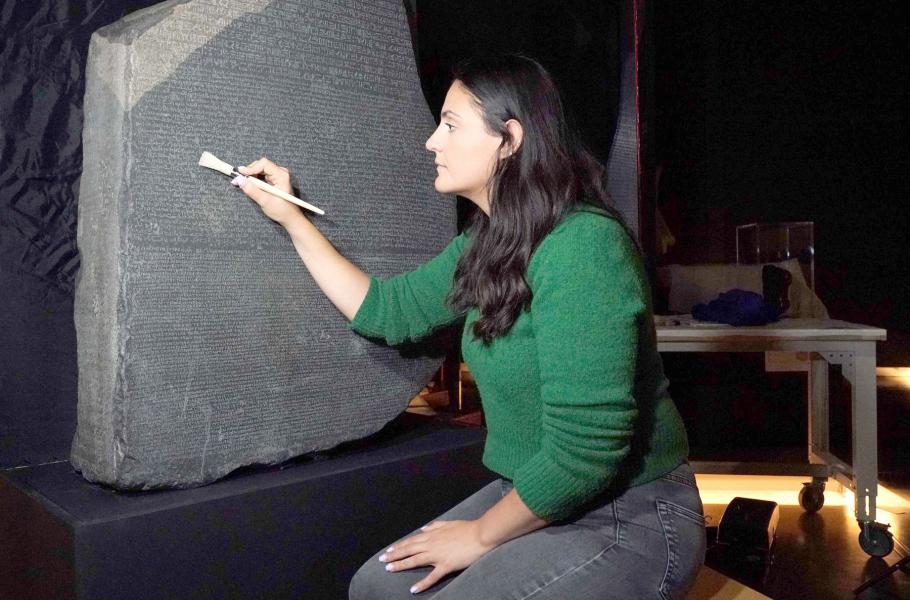 Rosettská deska se dnes nachází v srdci egyptské expozice Britského muzea a patří k tamním nejcennějším artefaktům. (foto: Profimedia)