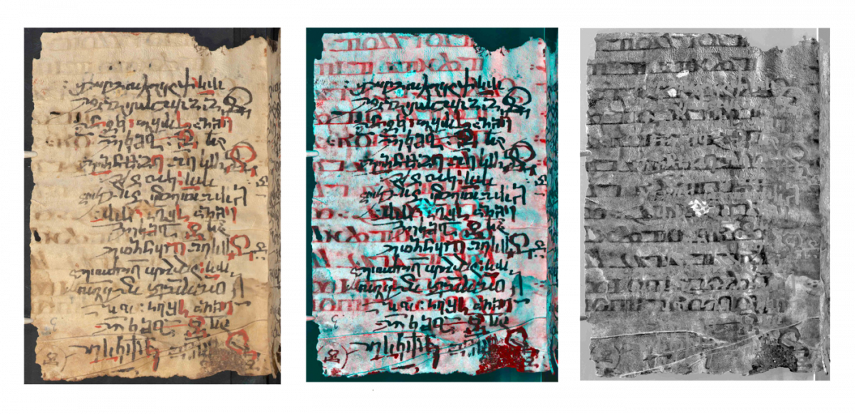 Sinai Palimpsest Project vedl Michael Phelps z kalifornské Early Manuscripts Electronic Library. Tato nezisková organizace se specializuje na digitalizaci starých vzácných rukopisů uložených v archivech univerzit, muzeí, knihoven i soukromých sbírek. Středověcí kronikáři vyškrabaný pergamen převrátili – starý text je tedy vzhůru nohama. Na jednotlivých obrázcích jsou tři fáze úprav.