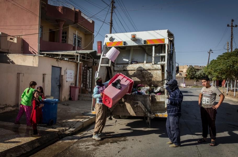 Podobná setkání se odehrála na všech územích, která ISIS v roce 2014 uchvátil. Bývalí zaměstnanci města brzy znovu zaujali svá stará místa a opravovali silnice, malovali přechody pro chodce, zprovozňovali elektrickou síť nebo řešili vyúčtování. „Nezbývalo nám než se vrátit do práce,“ vzpomíná Hamoud. „Dělali jsme to, co předtím. Jenže teď pro teroristickou organizaci.“