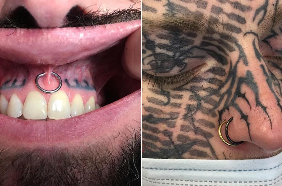 Tetování v ústech je náročné pro klienta i pro tatéra. Voet proto při práci nepoužívá tetovací strojek a vystačí si jen s jehlou.