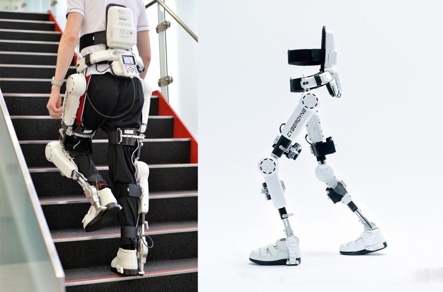 Japonská firma Cyberdyne vyvinula exoskelet, jenž paraplegikům umožní nejen vzpřímený postoj a chůzi, ale navíc i velmi intenzivní rehabilitaci. Pacient s těžce poraněnou míchou nebo s mozkem poškozeným mrtvicí sice ztratil v dolních končetinách cit a neovládá jejich svaly, ale nějaké signály z jeho mozku míchou do svalů na nohou přece jen dorazí. Jsou však příliš slabé, než aby dokázaly přinutit svaly ke smrštění a uvedly nohy do pohybu. Exoskelet HAL je napojen na svaly každé nohy pacienta devíti elektrodami, které tyto slabé impulzy z mozku zachytí. Řídicí jednotka exoskeletu nervové stimuly dekóduje a převede je na povely pro exoskelet.