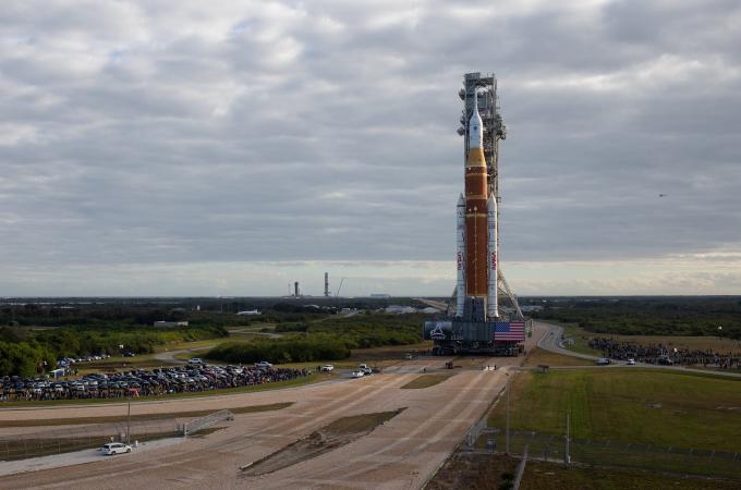 NASA je zase o krok blíž k cestě k Měsíci: Obří raketa SLS zamířila na odpalovací rampu