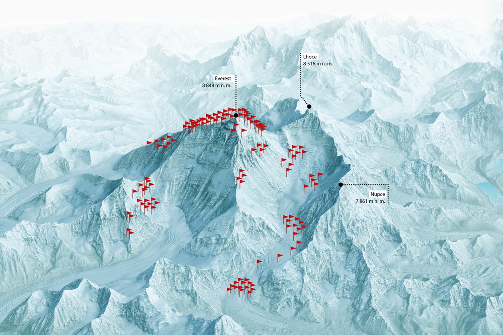 Na Zemi se nachází čtrnáct vrcholů vyšších než osm tisíc metrů, žádný z nich však nepředstavuje takový magnet jako Everest. V loňském roce jej úspěšně zdolalo téměř devět set lezců a „pouze“ pět z nich se nevrátilo dolů. Kde na svazích hory leží těla těch, kteří neměli štěstí?
