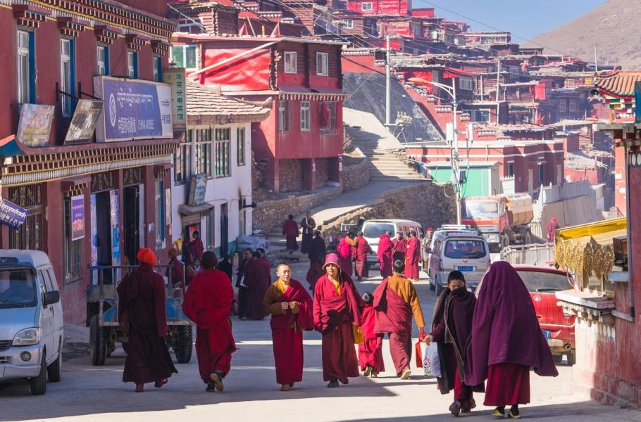 Tibetský Larung Gar je nejvýše položeným sídlištěm světa. Zdejší náboženská komunita je dlouhodobě trnem v oku čínským úřadům. (foto: Profimedia)